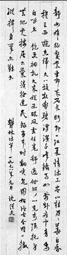 这样恬静的读书人从来不多。读他的书看他的成就,我也从来不希望看到他走出他的著述疲于跟俗世的人与事周旋。从少年到老年,我一心静静摩挲他的细致,远远瞻仰他的博大,悄悄赞叹他的超逸。我甚至刻意错过了同他通信同他见面的几次机缘:沈从文是薛涛笺上的彩影墨痕,一张航空信纸的问候,一堂灯红茶绿的寒暄,终归是对那一叶风华的轻慢与冒渎。他的字我倒非常愿意集藏。有了他写给施蛰存先生的一封长信,有了他在张充和先生家里写的一幅斗方,我更想亲炙的是他一生常写的朱丝栏长条章草小字。